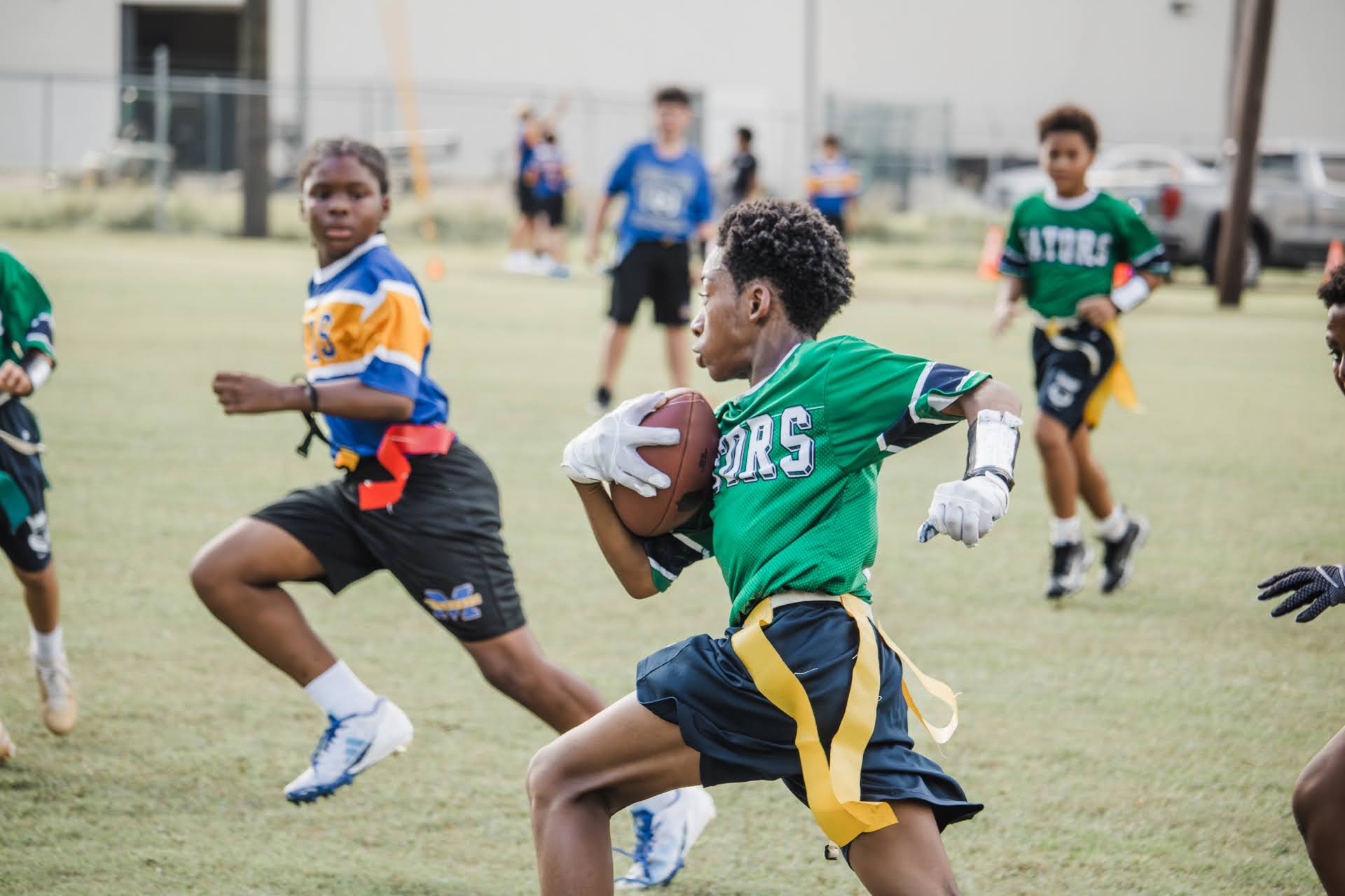 Starting in fourth Grade, student have the opportunity to participate in 7-man Flag Football.